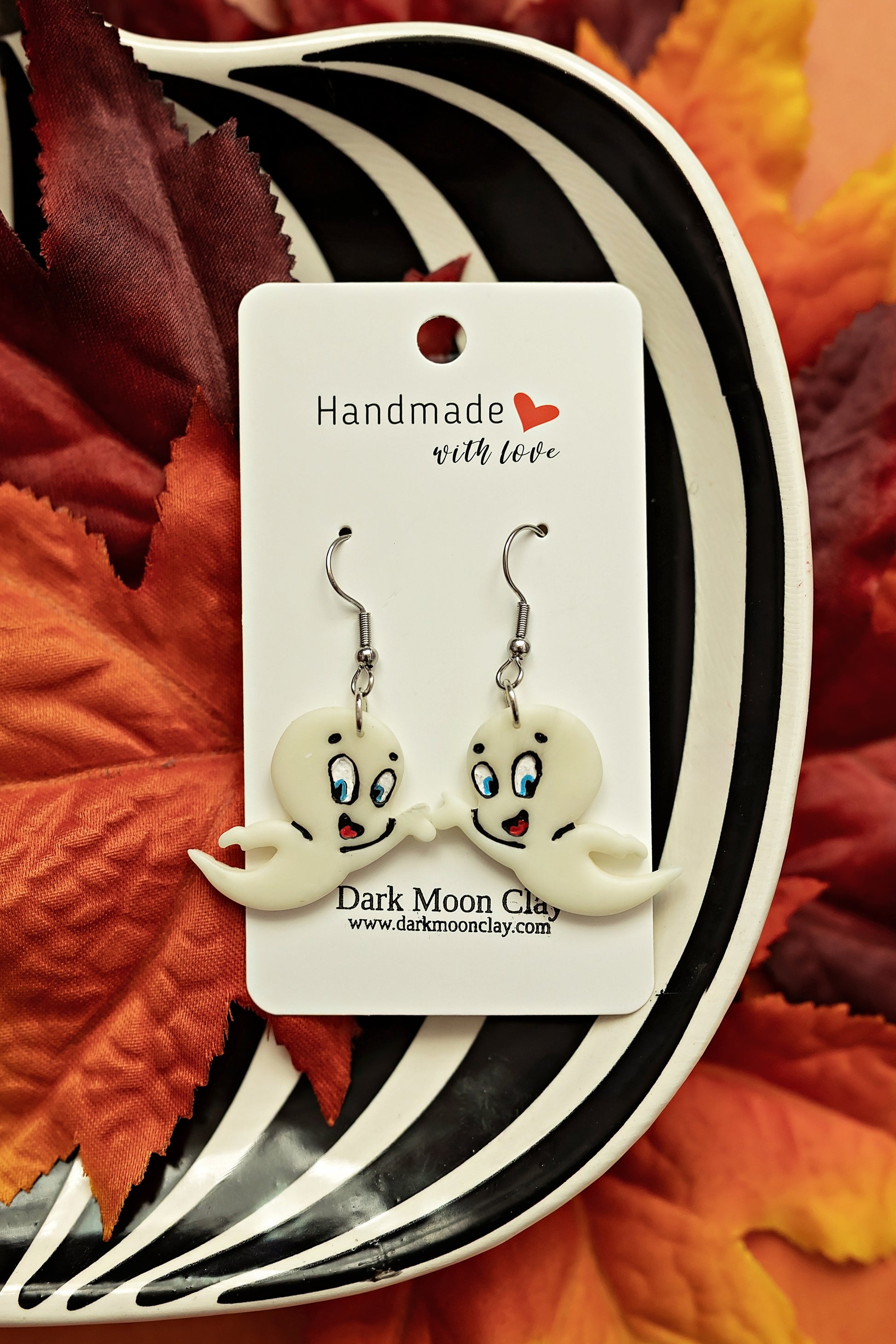 Handmade of polymer clay and stainless steel.
