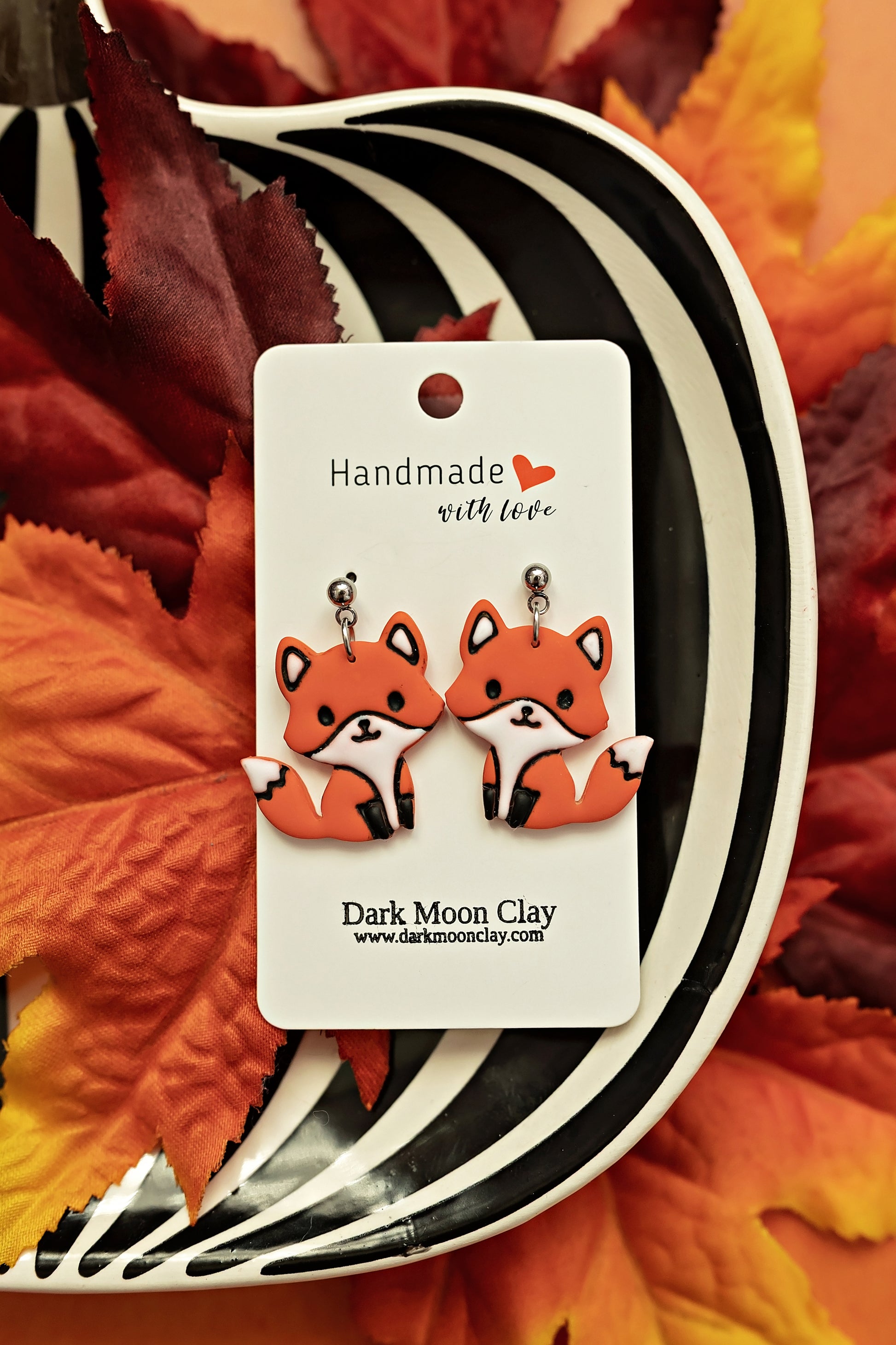 Handmade of polymer clay and stainless steel.