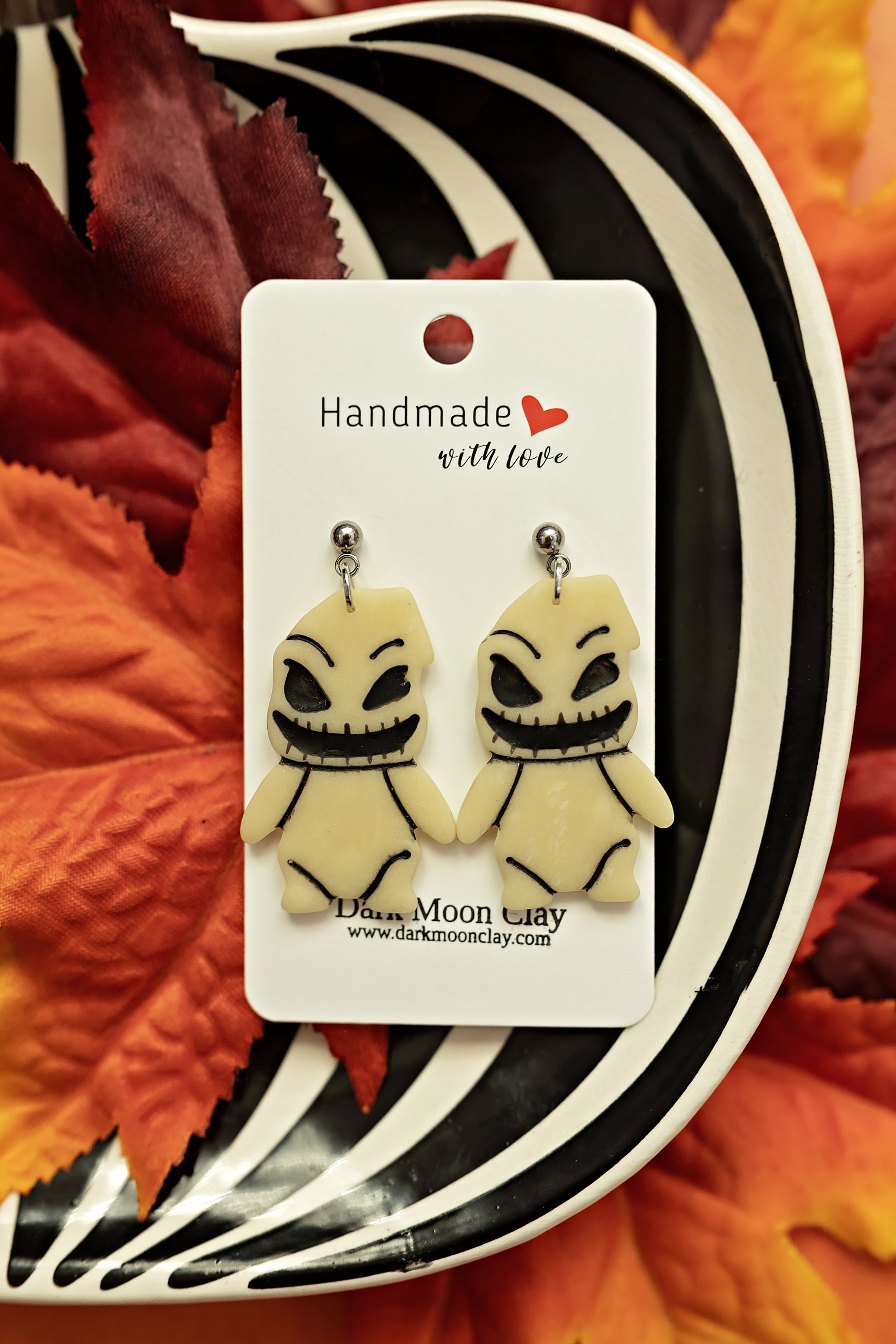 Handmade of polymer clay and stainless steel.
