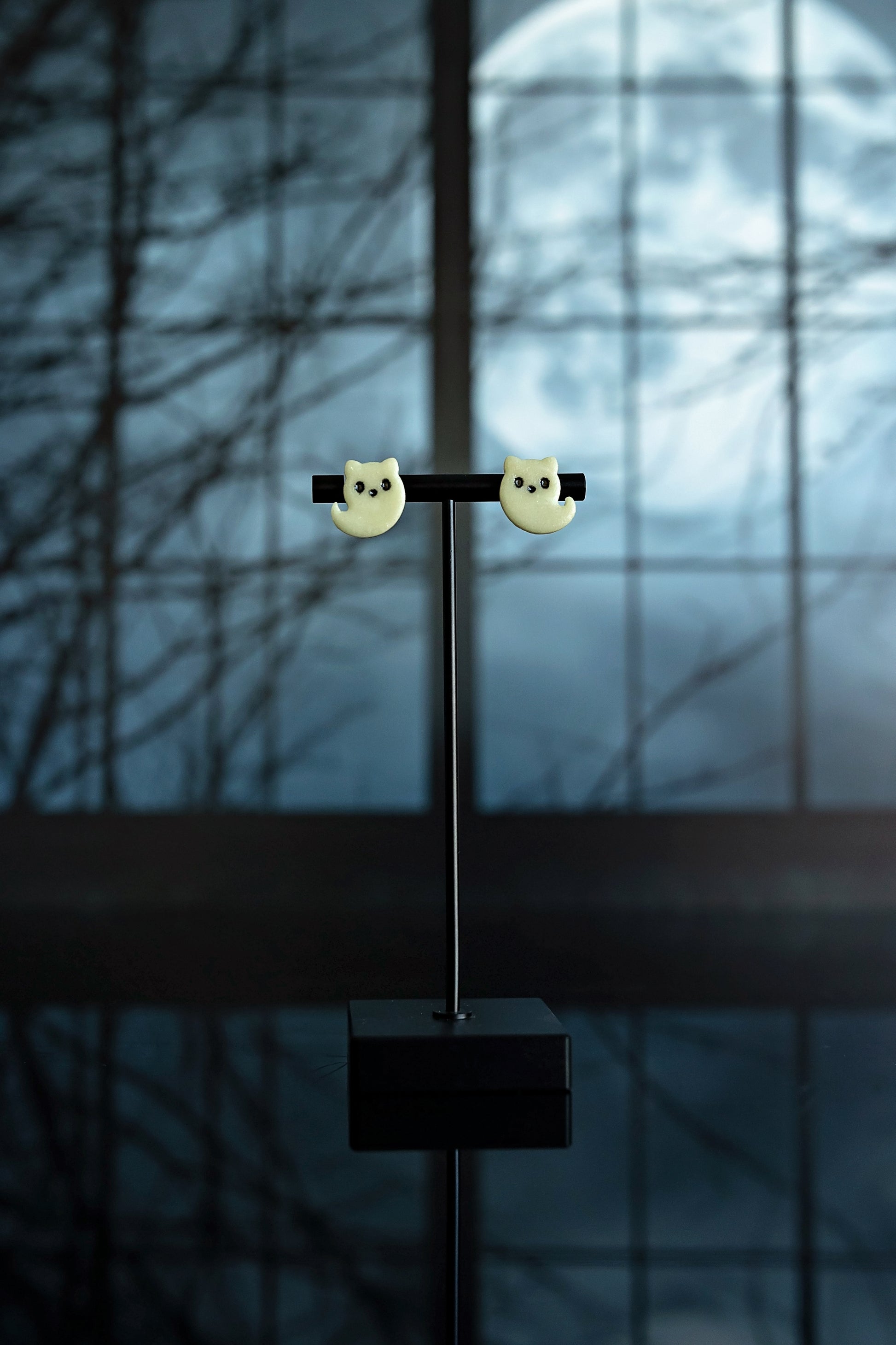 Glow in the dark kitty ghost studs with a slight sparkle.