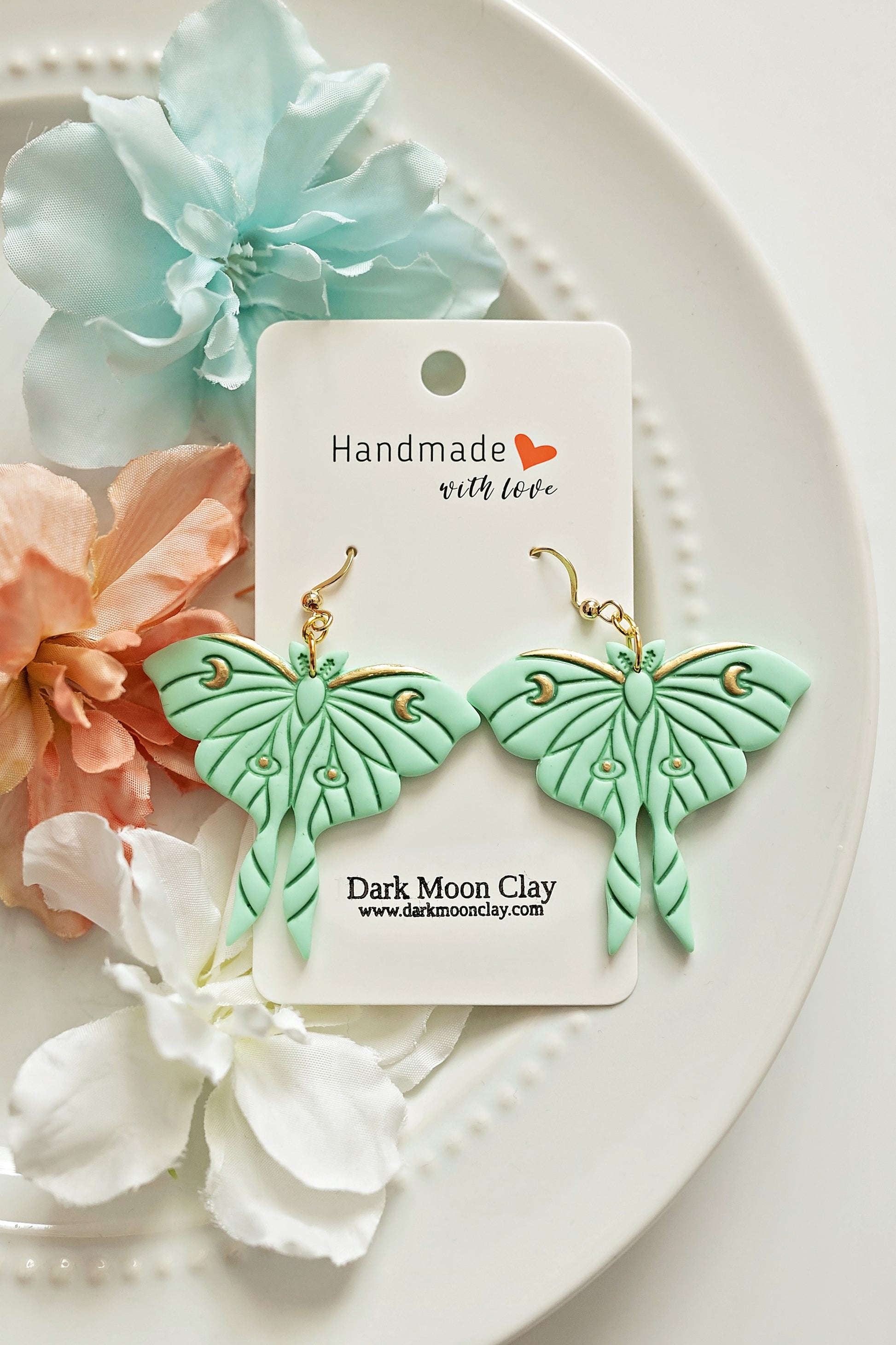 Handmade of sparkly polymer clay, and gold plated stainless steel.