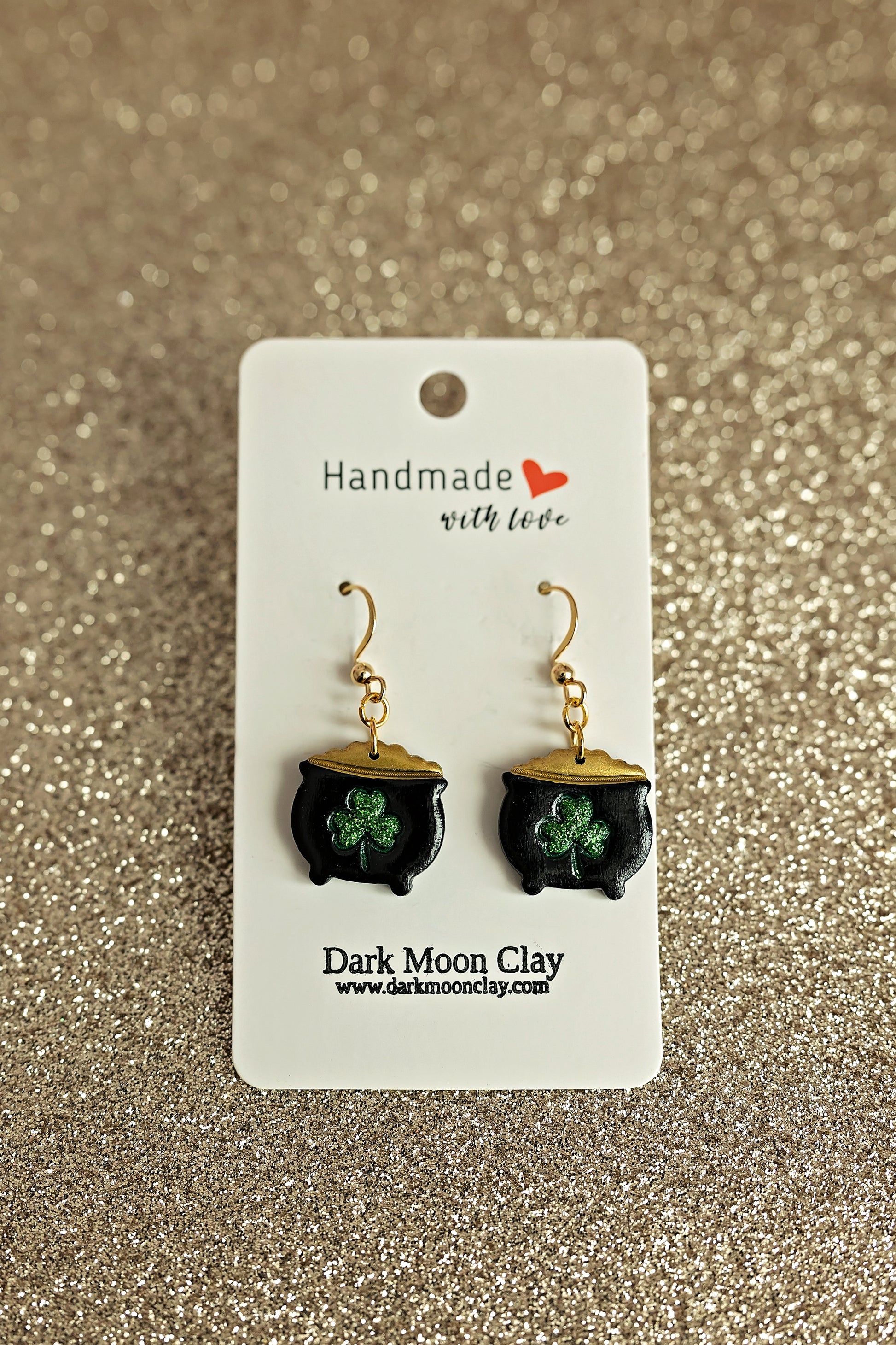 Handmade of polymer clay, and gold stainless steel.